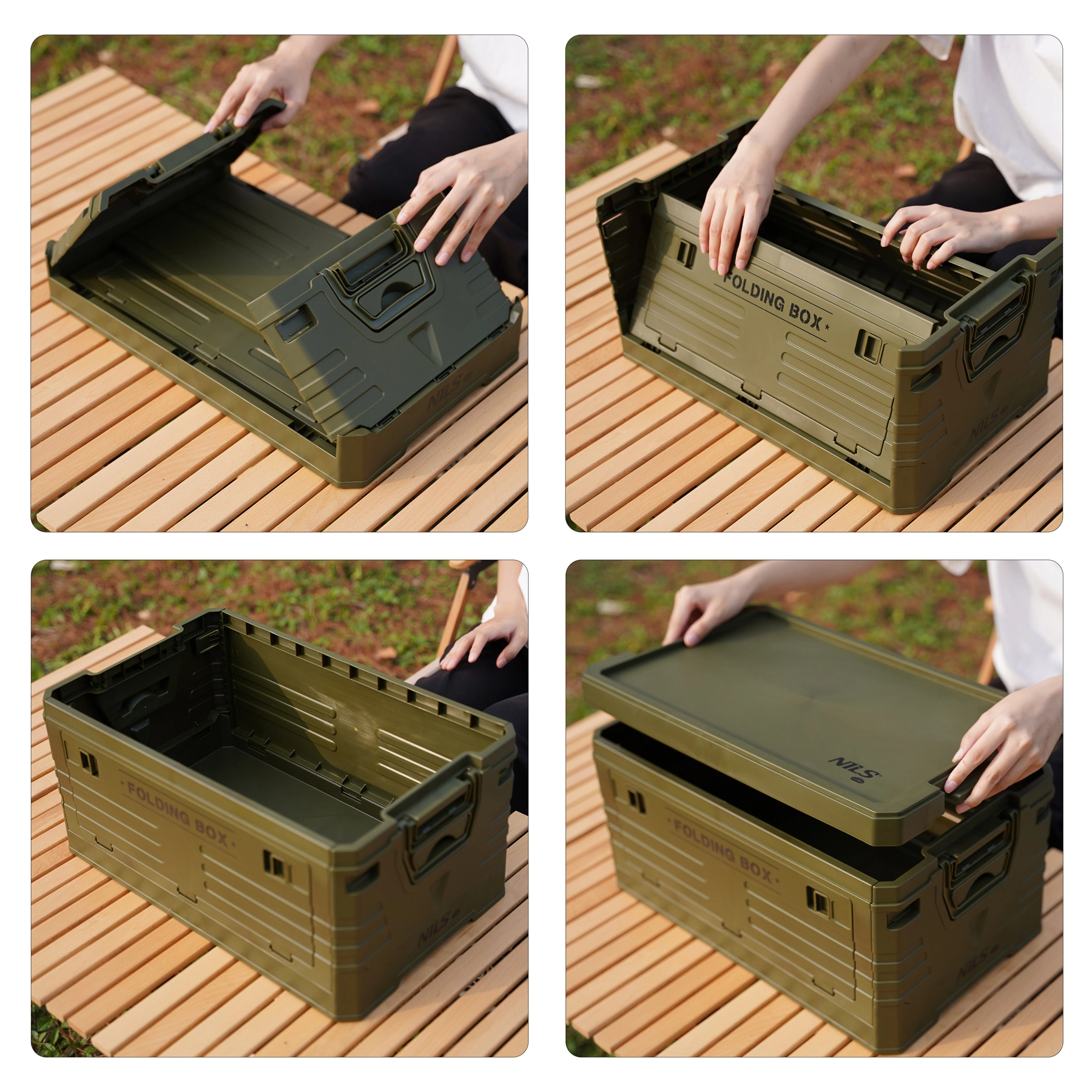 Utrzymuj porządek z solidnym składanym pojemnikiem z pokrywą o pojemności 50 l. Konstrukcja z wysokiej jakości polipropylenu (PP) jest odporna na wilgoć i obciążenia mechaniczne, więc bez obaw przechowasz narzędzia, sprzęt sportowy, żywność czy akcesoria podróżne. Po złożeniu pojemnik ma wysokość tylko 10 cm, dzięki czemu oszczędza miejsce w bagażniku, garażu i domu.