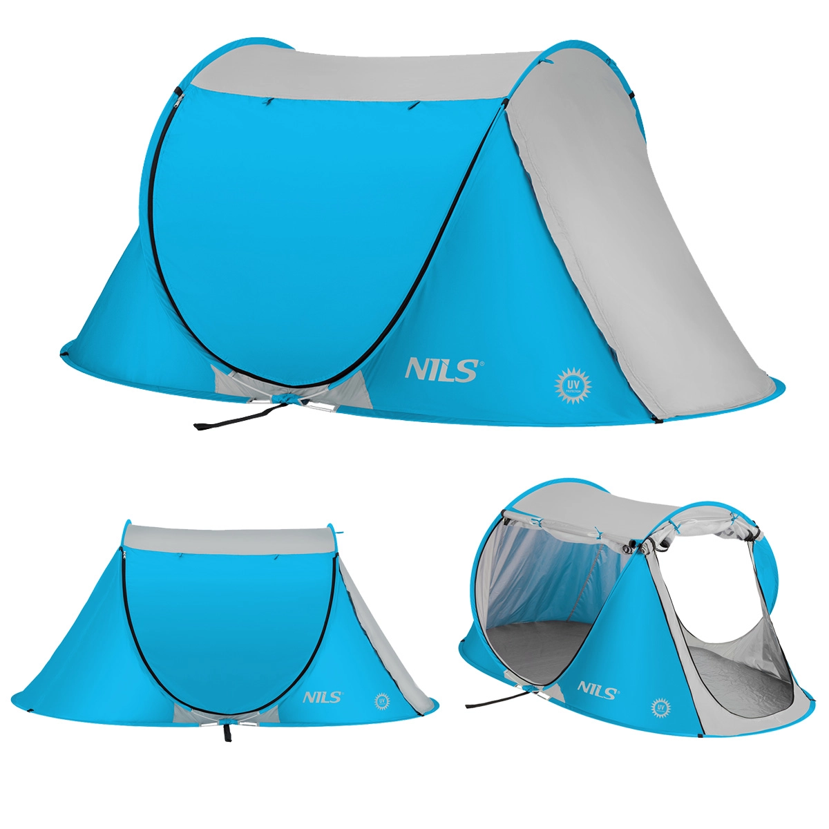 Ciesz się wygodą i cieniem na plaży z namiotem plażowym NILS Camp NC3043. Dzięki samorozkładającej się konstrukcji rozłożysz go w kilka sekund. Oferuje ochronę przed promieniowaniem UV, przestronne wnętrze (220 × 120 × 95 cm) oraz trzy wejścia z moskitierą dla doskonałej cyrkulacji powietrza. Lekki, kompaktowy i wytrzymały – idealny towarzysz nad wodę i na kemping.