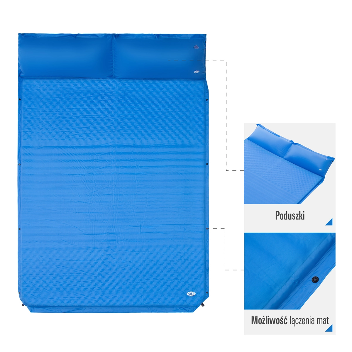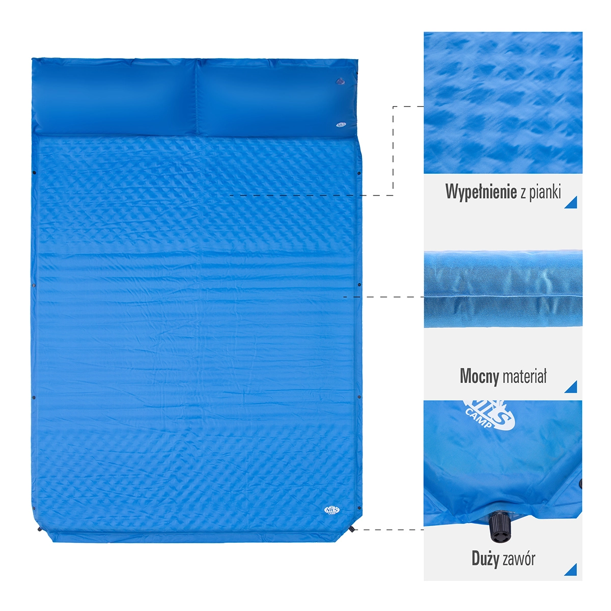 Samopompująca mata NILS CAMP NC4060 została zaprojektowana z myślą o maksymalnym komforcie dla dwóch osób. Dzięki automatycznemu napełnianiu powietrzem po otwarciu zaworu nie ma potrzeby używania pompki, a w kilka chwil zyskujesz stabilną i przyjemną powierzchnię do leżenia. Szerokość 130 cm zapewnia wygodną przestrzeń dla par oraz osób ceniących sobie więcej miejsca.
