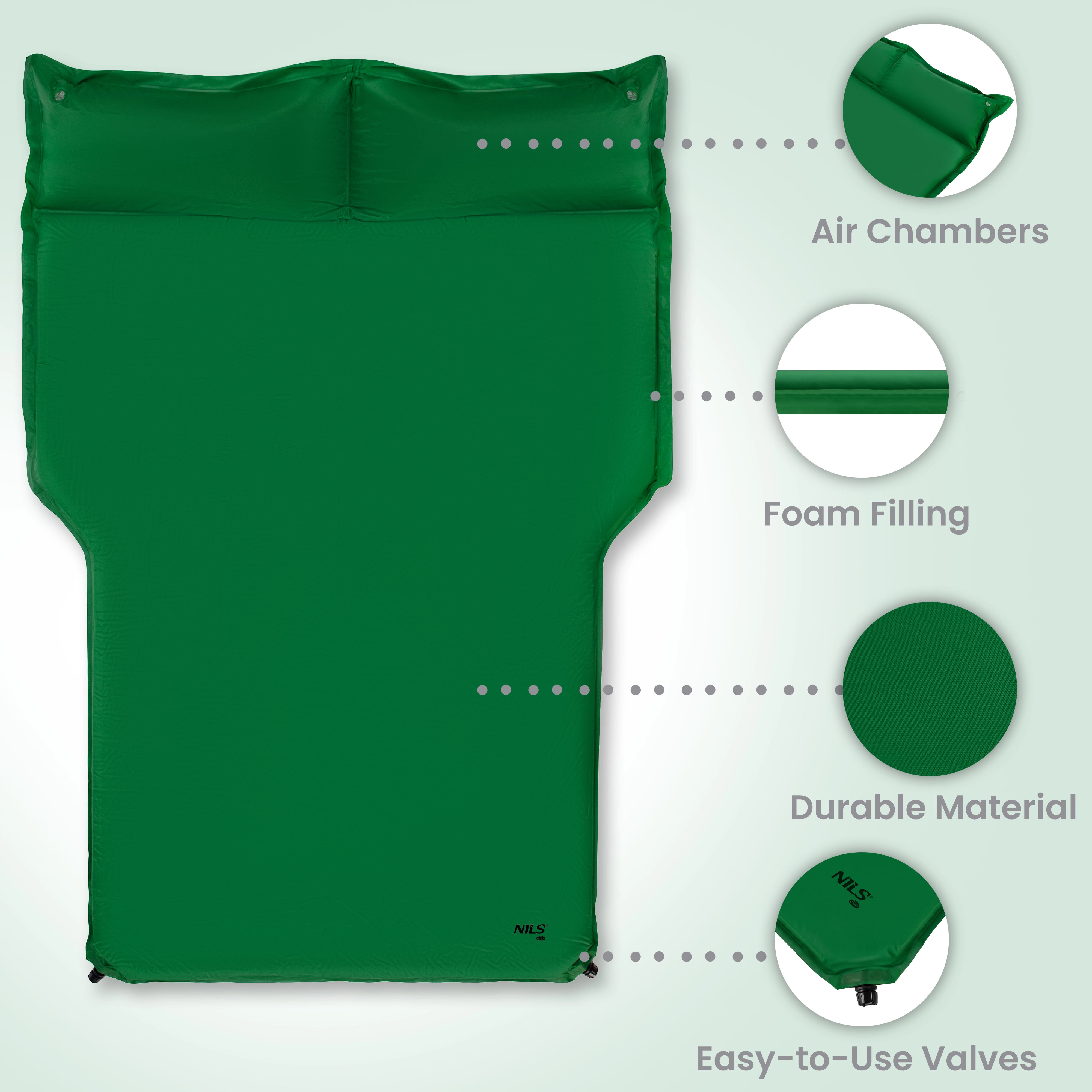 Praktyczna samopompująca mata do auta NILS Camp w kilka minut zamieni bagażnik Twojego samochodu w wygodne miejsce do spania. Dzięki grubości 5 cm, zintegrowanym poduszkom i wytrzymałym materiałom oferuje komfort, szybkie przygotowanie oraz niezawodną izolację do car camping, wycieczek i awaryjnego noclegu.