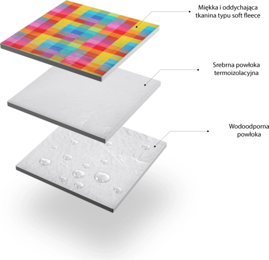 Praktyczny i wygodny koc piknikowy dla całej rodziny. Górna warstwa z przyjemnego polaru, a dolna aluminiowa folia z wodoodporną powłoką zapewniają ochronę przed wilgocią i chłodem. Łatwo składa się do kompaktowej „torby” z uchwytem i regulowanym paskiem na ramię dla wygodnego przenoszenia.