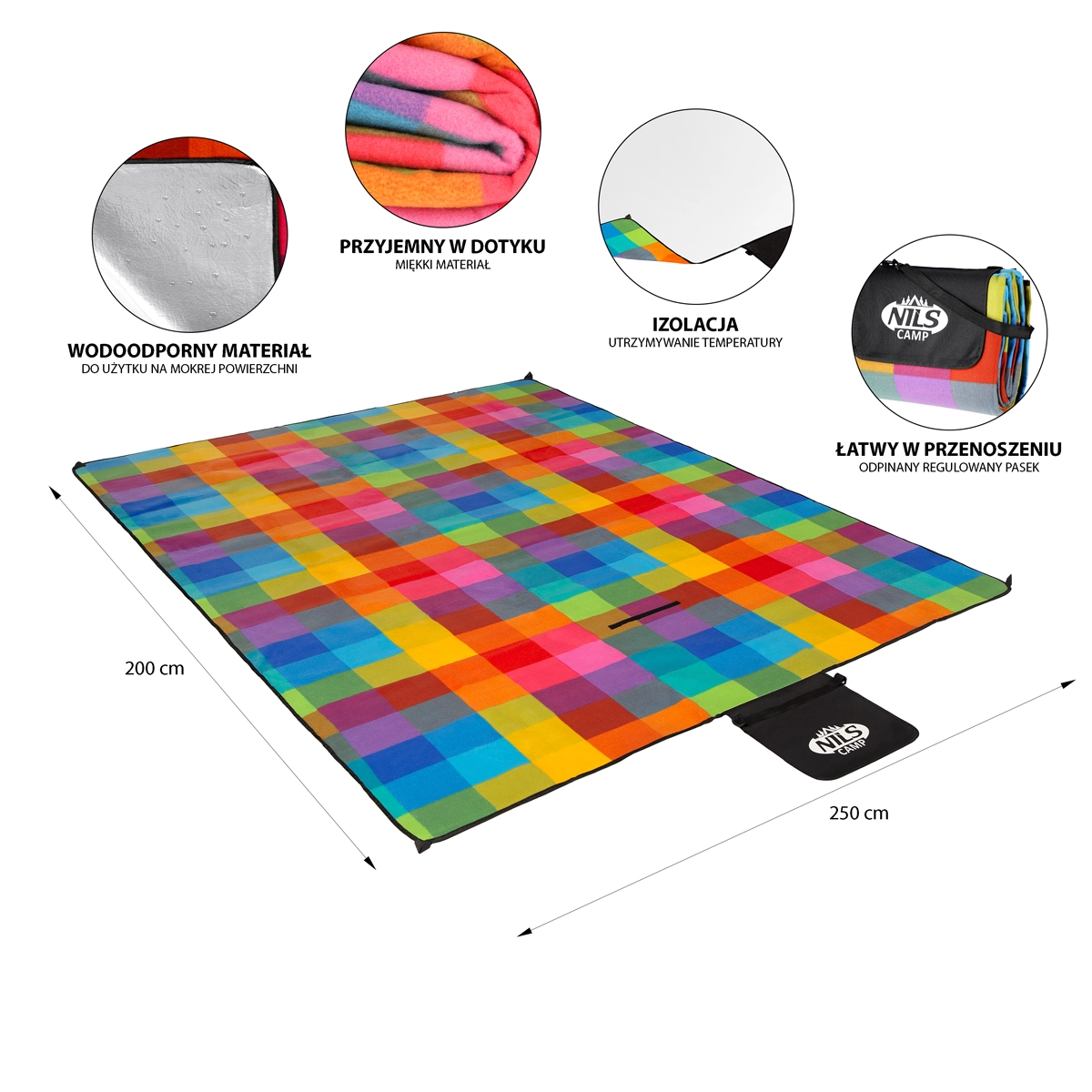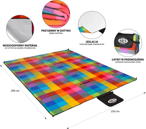Ciesz się wypoczynkiem w parku, nad wodą i w ogrodzie z kocem NILS CAMP NC2221. Górna strona z miękkiego polaru jest przyjemna w dotyku, a dolna warstwa z aluminiowej folii z wodoodporną powłoką niezawodnie izoluje od chłodu i wilgoci mokrej trawy lub piasku.