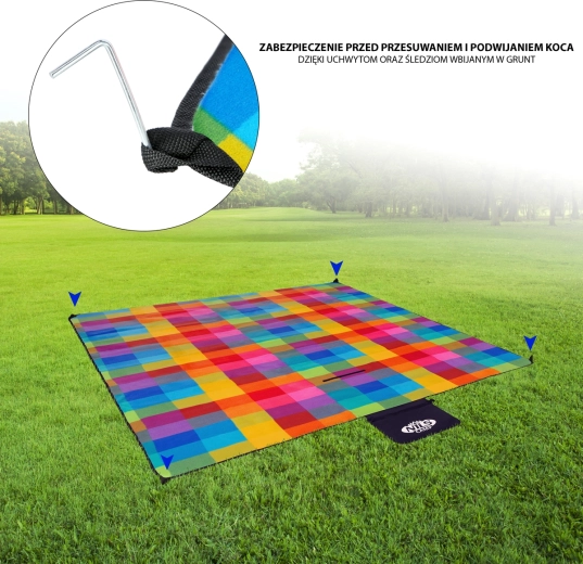 Koc szybko i schludnie składa się do kompaktowego pakunku w kształcie „torby”, wyposażonego w uchwyty i pasek na ramię. Dzięki imponującym wymiarom 200 × 250 cm zapewnia dużo miejsca na rodzinny piknik, zabawę dzieci i relaks na plaży.