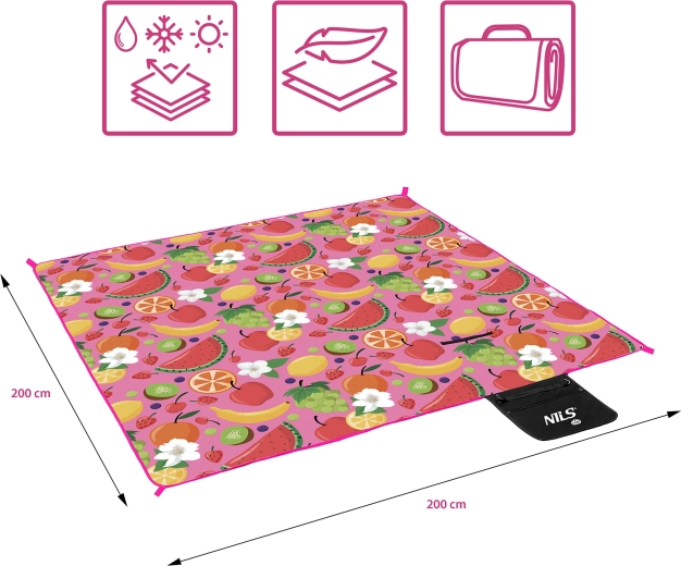 Koc piknikowy NILS Camp Fruits 200 × 200 cm