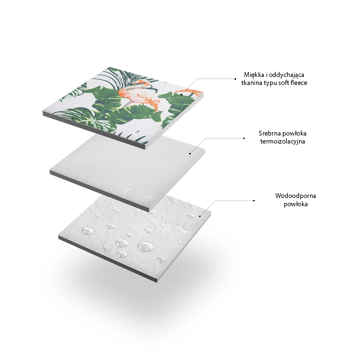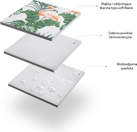 Folia aluminiowa z wodoodporną powłoką chroni przed wilgocią i chłodem, dzięki czemu piknik będzie komfortowy nawet na mokrej trawie.
