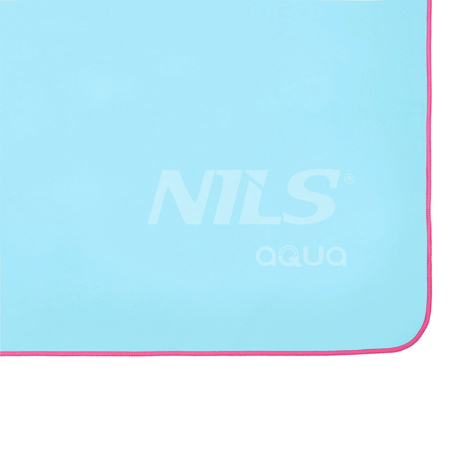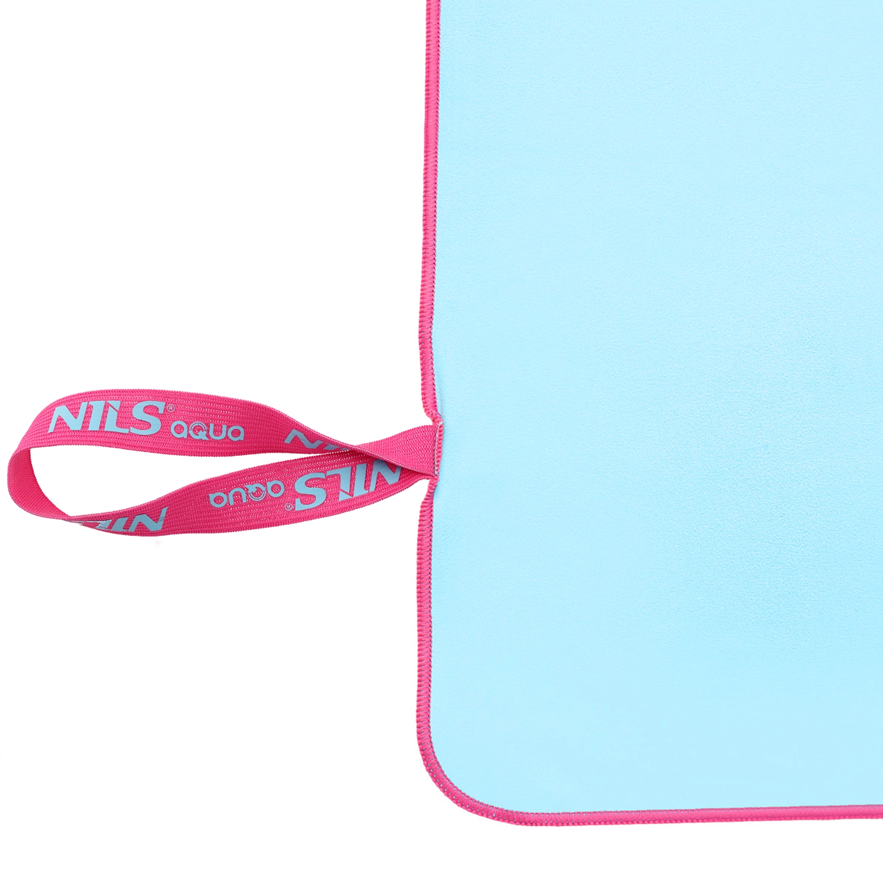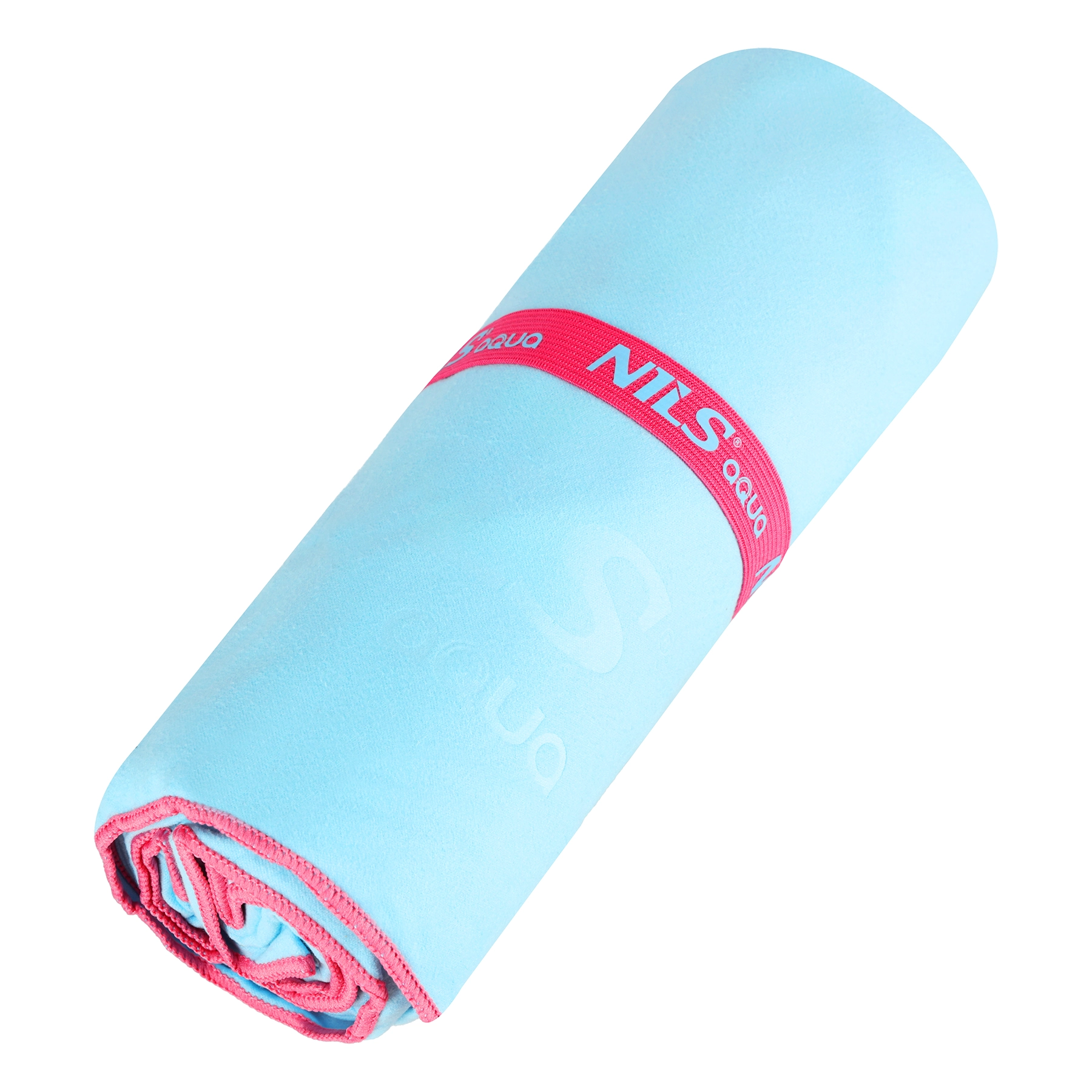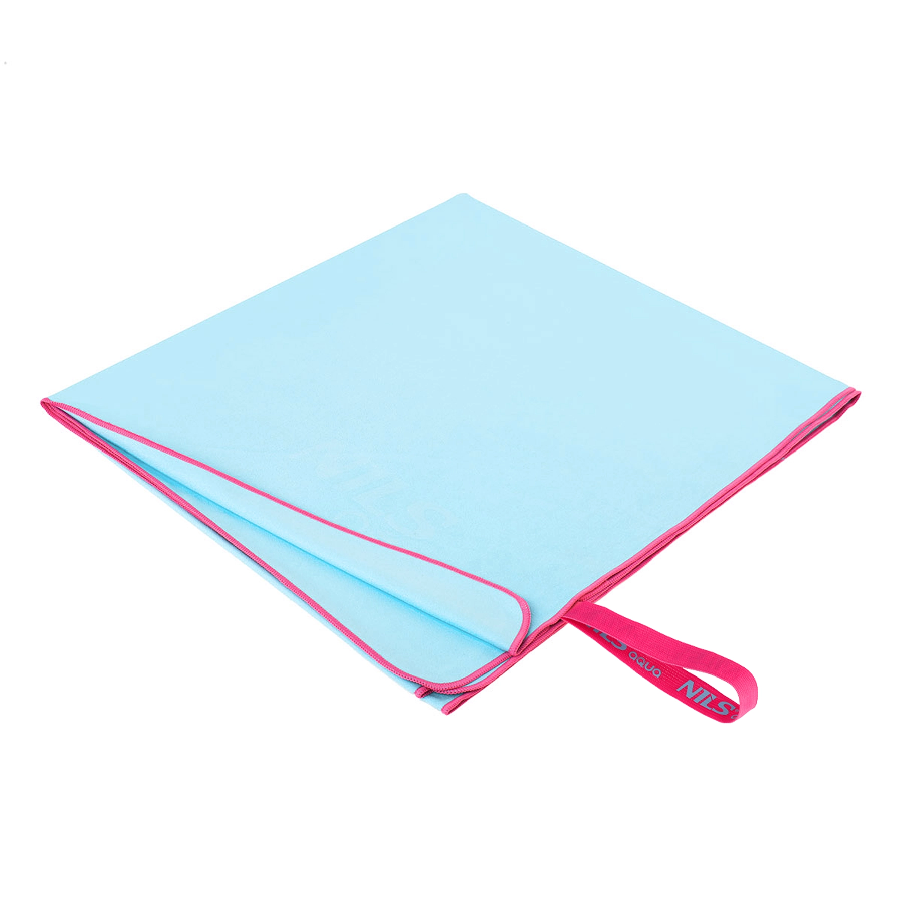Szybkoschnący ręcznik z mikrofibry NILS aqua, jasnoniebieski/różowy, 200 × 90 cm