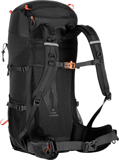 Plecak wyposażono w pokrowiec przeciwdeszczowy chroniący przed deszczem, elementy odblaskowe dla lepszej widoczności oraz gwizdek w pasku piersiowym na sytuacje awaryjne. Regulowane, miękko wyściełane szelki, pas piersiowy i biodrowy zmniejszają zmęczenie i stabilizują ładunek. Nie brakuje uchwytów na kije trekkingowe i inne akcesoria, przygotowania pod bukłak na wodę oraz praktycznych siatkowanych kieszeni bocznych.