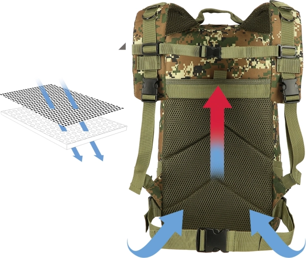 Komfort noszenia zapewniają wyściełane plecy z siatki z systemem NILS Vent dla cyrkulacji powietrza, regulowane szelki oraz pas piersiowy i biodrowy dla lepszego rozłożenia ciężaru. Nie brakuje pasów kompresyjnych do ściągania objętości i elastycznych pętelek do mocowania akcesoriów.