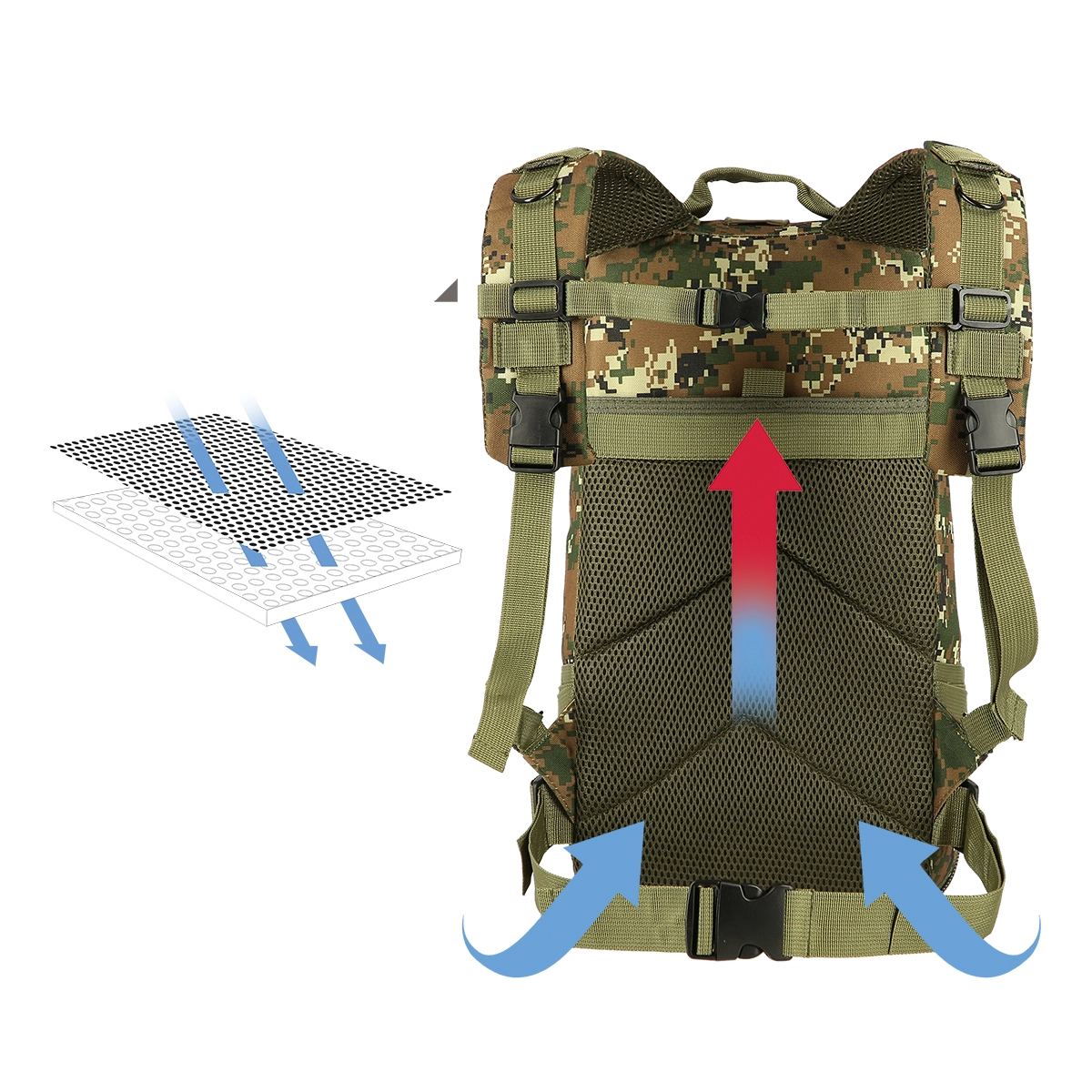 Praktyczny plecak turystyczny na codzienne wycieczki i lekką turystykę o pojemności 30 l. Oferuje trwały nylon z słupem wody 1000 mm, przemyślane 4 komory dla przejrzystej organizacji, wygodne wyściełane szelki oraz system wentylacji NILS Vent dla lepszego przepływu powietrza i mniejszego pocenia pleców.