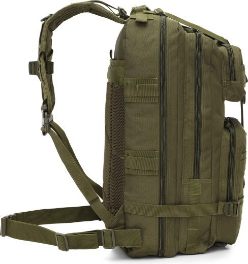 Przednie dodatkowe kieszenie zapewniają szybki dostęp do drobiazgów – dokumentów, map czy narzędzi – i pomagają utrzymać porządek w ekwipunku. Regulowany pas piersiowy i biodrowy równomiernie rozkładają obciążenie i stabilnie trzymają plecak przy ciele podczas jazdy na rowerze, szybkiego marszu oraz aktywności w terenie. Wysokiej jakości komponenty (pasy PP, klamry POM i wytrzymałe zamki) gwarantują długą żywotność.