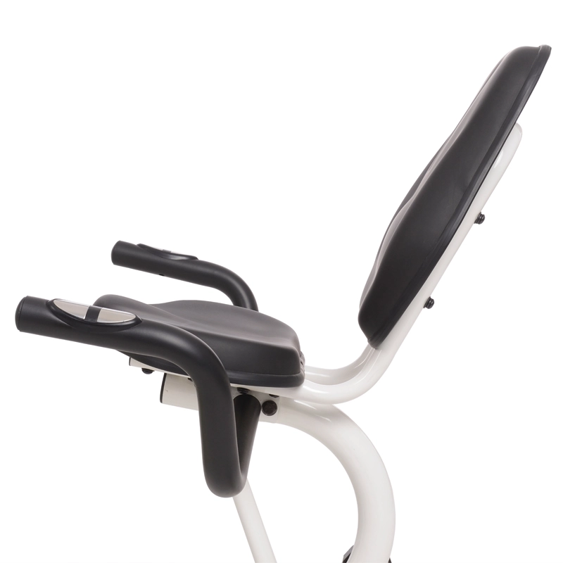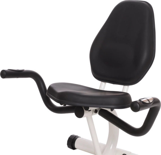 Szerokie, tapicerowane siodło z ergonomicznym oparciem i bocznymi uchwytami chroni plecy, zwiększa stabilność i umożliwia dłuższe, komfortowe treningi bez przeciążenia.