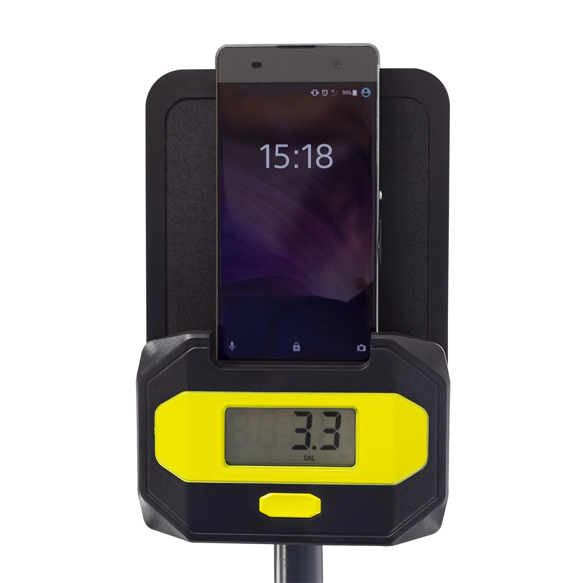 Solidne korby pedałów z łożyskami wieńcowymi podnoszą trwałość i stabilność podczas treningu. Urządzenie wyposażono w statyczne i ruchome uchwyty dla kompleksowego zaangażowania grup mięśniowych i precyzyjniejszej kontroli intensywności. Komputer LCD pokazuje kluczowe metryki, w tym puls, a funkcja Scan automatycznie przełącza wyświetlane dane.