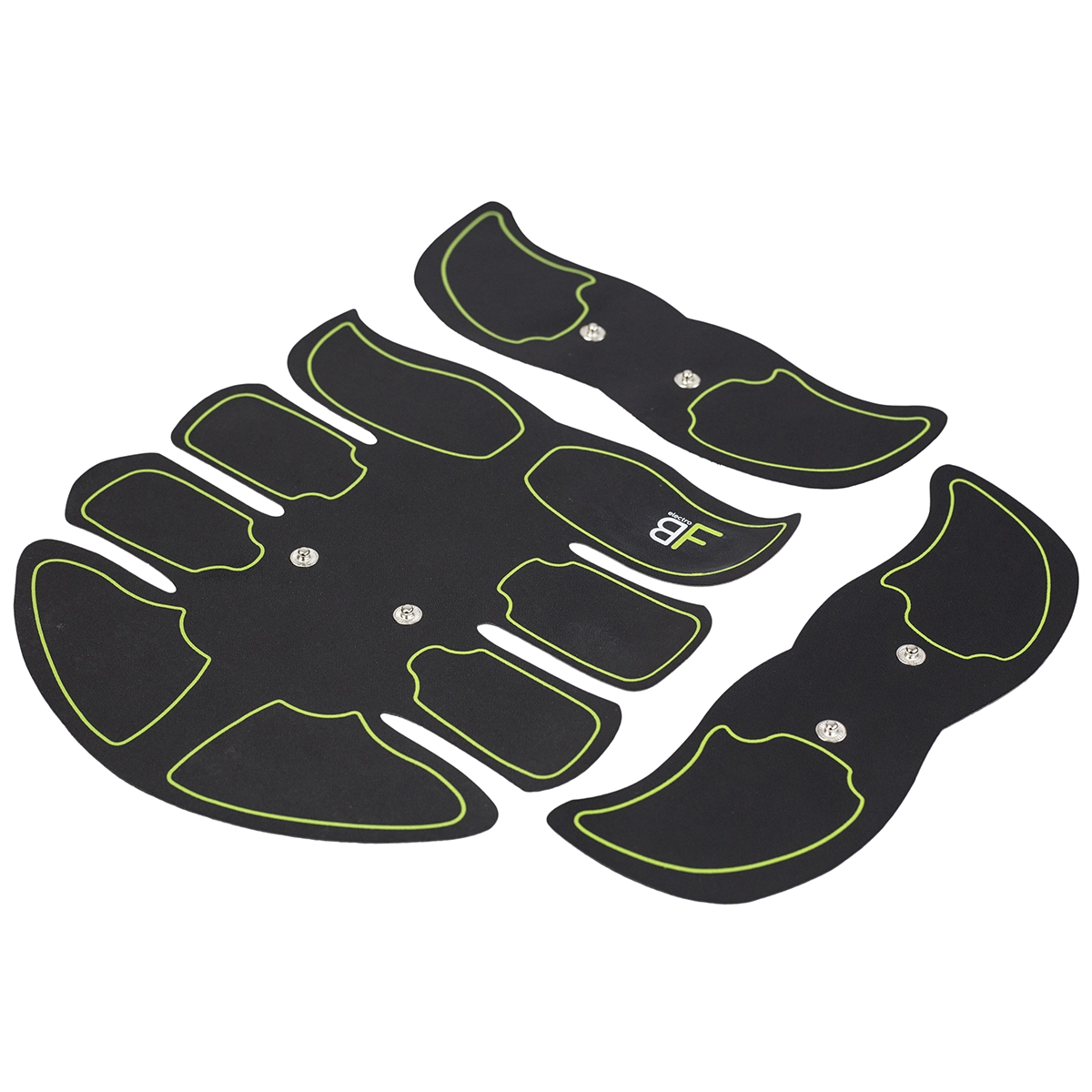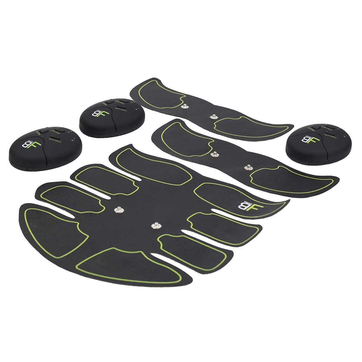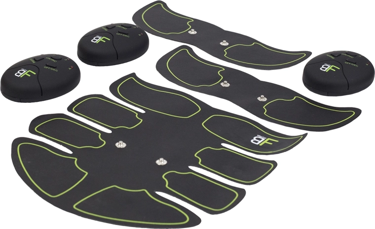 Główna podkładka na brzuch oraz dwie mniejsze jednostki na ramiona lub uda obejmują kluczowe partie dla efektywnego wzmacniania i modelowania.