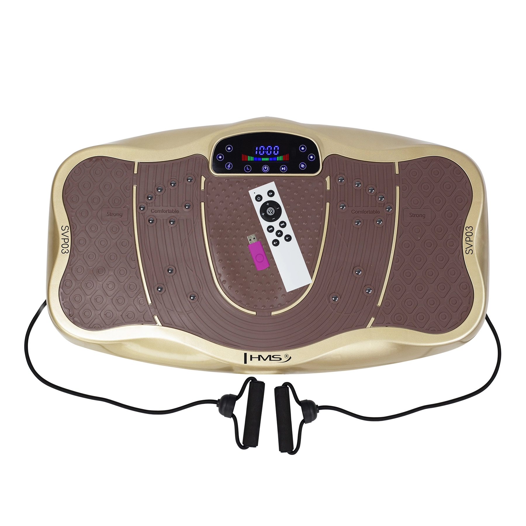 HMS SVP03 to wszechstronna platforma wibracyjna zaprojektowana do efektywnego wzmocnienia nóg, pośladków, brzucha oraz górnych partii ciała. Trzy poziomy intensywności symulują marsz, bieg i sprint w zależności od szerokości rozstawu stóp, natomiast 99 stopni prędkości i timer umożliwiają precyzyjne ustawienie treningu. Dzięki wbudowanym magnesom platforma dodatkowo stymuluje krążenie i wspiera regenerację.
