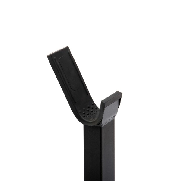 Haki z grubą, antypoślizgową gumą chronią gryf i konstrukcję przed zarysowaniami oraz zapewniają ciche i pewne odkładanie.