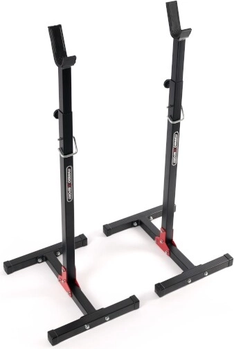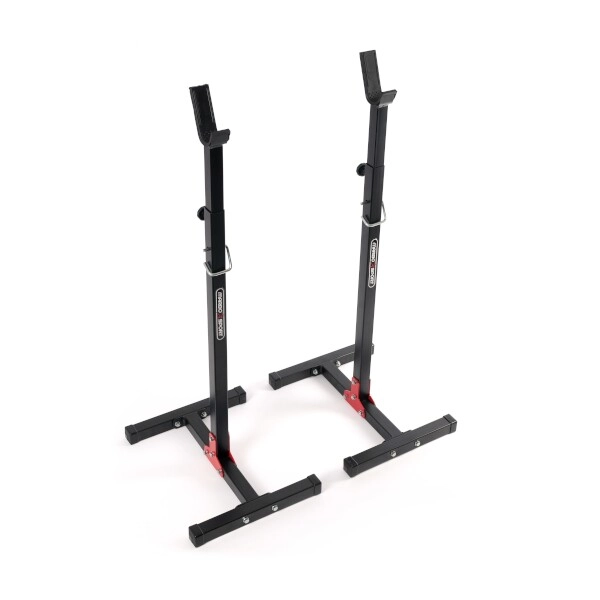 Stojaki można używać samodzielnie do przysiadów, wykroków czy martwego ciągu z podwyższenia, albo sparować z ławką treningową do wyciskania na klatkę i barki. Kompaktowe wymiary ułatwiają przechowywanie i przenoszenie, a wysoka nośność 250 kg zapewnia zapas również do wymagających treningów w domu (klasa H – nie do użytku komercyjnego).