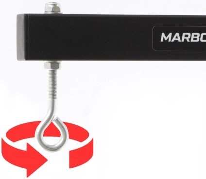 Uchwyt na worek MARBO Sport wykonano z wytrzymałej stali i zaprojektowano do intensywnego użytku domowego oraz klubowego. Dzięki precyzyjnej obróbce na maszynach CNC możesz liczyć na dokładny montaż, wysoką stabilność i długą żywotność. Stalowe ucho do zawieszenia worka jest zabezpieczone kontrnakrętkami przed samoczynnym luzowaniem i obracaniem.