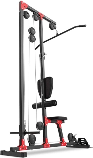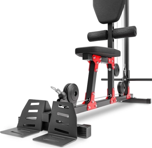 Wielofunkcyjna maszyna z górnym i dolnym wyciągiem MARBO Sport MH-W106 2.0 to solidne rozwiązanie do intensywnego domowego treningu pleców, barków i ramion. Stabilna stalowa konstrukcja, płynna praca dzięki krążkom z łożyskami kulkowymi oraz kompatybilność z obciążeniami do 120 kg czynią z niej idealny wybór dla każdego, kto chce podnieść swój poziom. Dla maksymalnego komfortu nie brakuje regulowanej blokady nóg oraz wysokiej jakości tapicerki ze skóry syntetycznej.