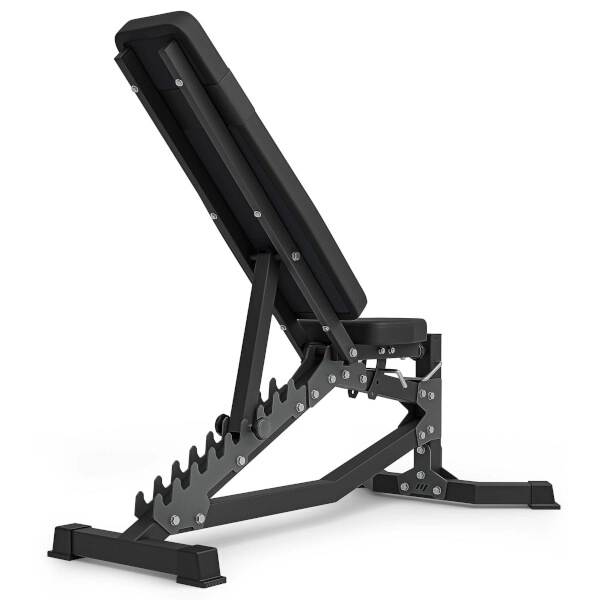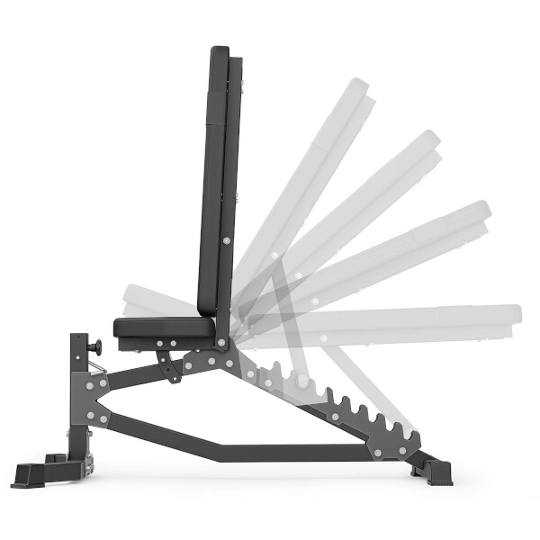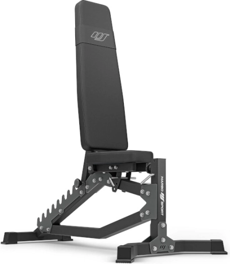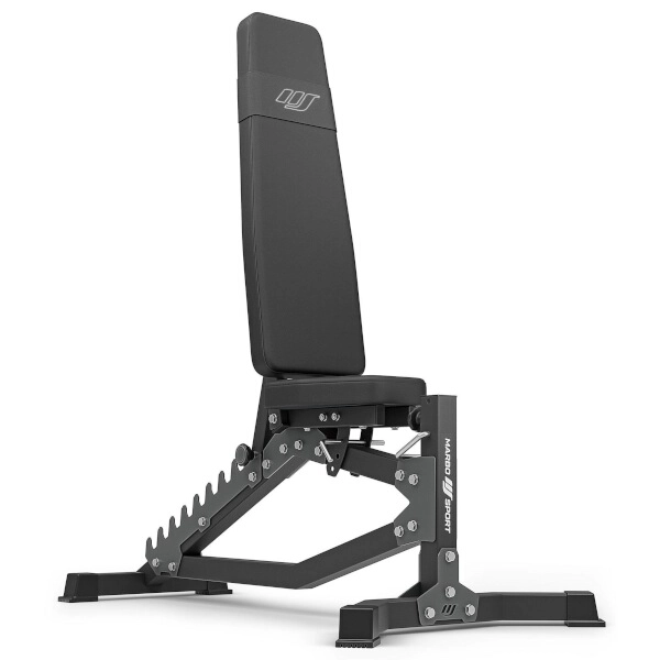 Ławka MARBO Sport MS-L102 2.0 została zaprojektowana z myślą o maksymalnej precyzji, komforcie i bezpieczeństwie. Laserowo wycinane ząbki pozwalają na dokładną regulację oparcia w 10 kątach od niemal pionu aż po ławkę skośną -21°. Siedzisko ustawisz w 3 pozycjach za pomocą solidnego sworznia blokującego. Mocna konstrukcja z profili stalowych 50 × 50 × 2 mm gwarantuje wyjątkową stabilność i udźwig do 300 kg.