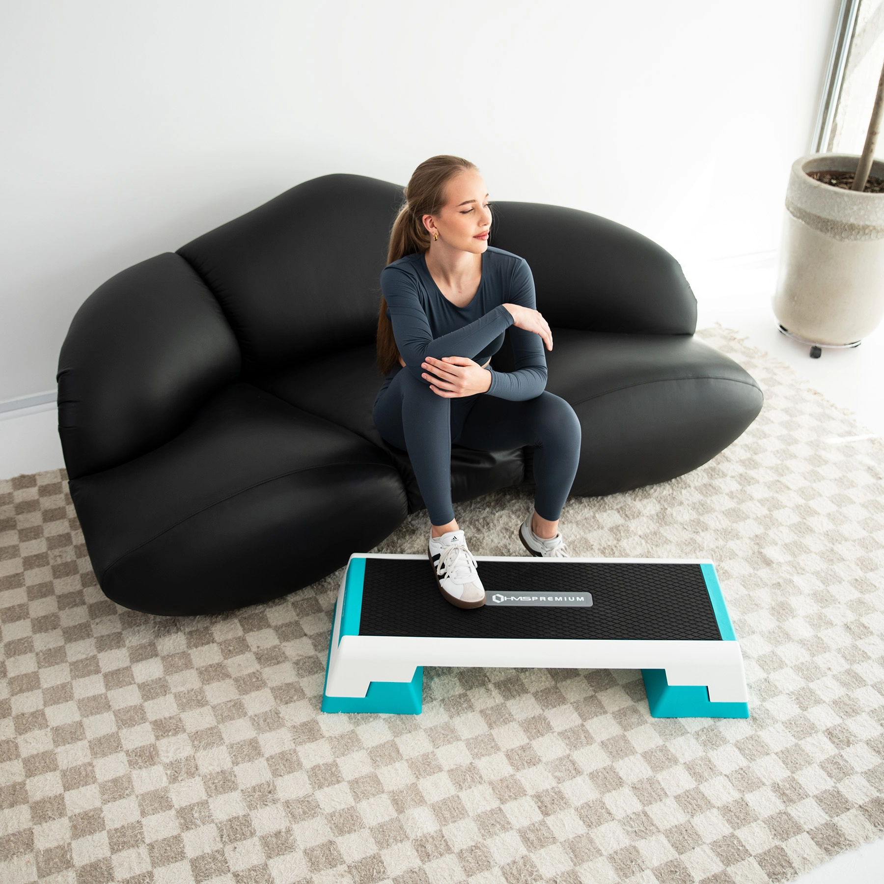 Teksturowana, antypoślizgowa powierzchnia oraz gumowe nóżki utrzymują step na miejscu nawet podczas dynamicznych sekwencji, skoków i treningu HIIT.