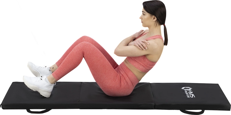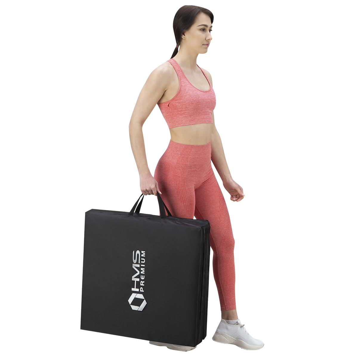 Trzy solidne panele złożysz w kilka sekund. Zintegrowane uchwyty umożliwiają wygodne przenoszenie do sali gimnastycznej i w podróży.