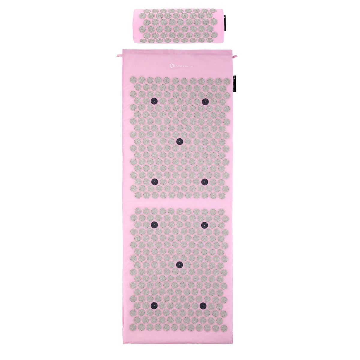 Zestaw do akupresury HMS Premium w eleganckiej różowo-białej kolorystyce łączy długą matę i ergonomiczną poduszkę do ukierunkowanej stymulacji punktów uciskowych na całym ciele. Gęste rozmieszczenie plastikowych kolców na specjalnie ukształtowanych rozetach zapewnia optymalny nacisk w pozycji leżącej i siedzącej, wspiera uwalnianie endorfin i przynosi naturalny relaks oraz lepszy sen.