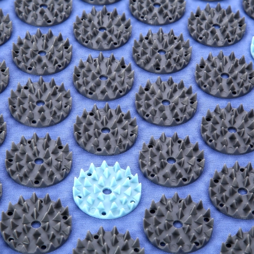 Gęste rozmieszczenie plastikowych rozet zapewnia równomierny nacisk na całej powierzchni pleców i stóp, wspiera ukrwienie i szybką ulgę w napięciu.