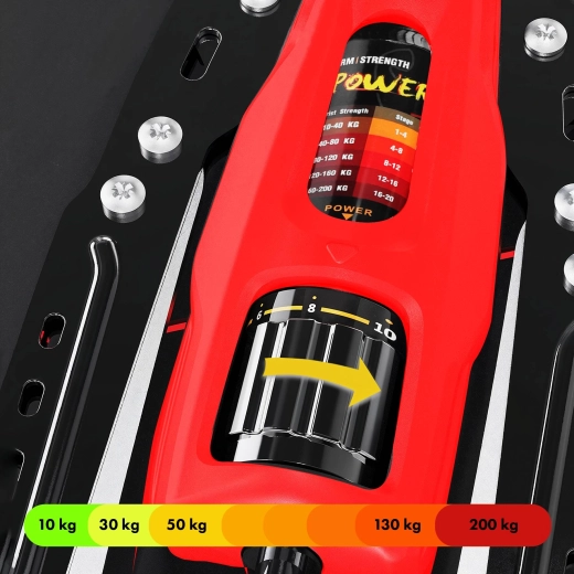 - Szeroki zakres oporu 10–200 kg – uniwersalny dla początkujących i zaawansowanych.