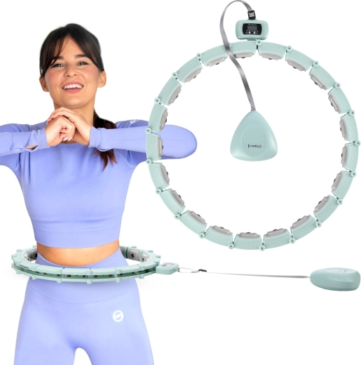 HMS HHM14 to nowoczesne masażowe hula hoop do efektywnego treningu w domu. Składa się z 21 zatrzaskowych segmentów, więc łatwo dopasujesz obwód do talii 76–113 cm. Wewnątrz obręczy znajduje się prowadnica z kotwicą na łożyskach kulkowych, do której przymocowany jest ciężarek 380 g na regulowanym sznurku (16–32 cm). Dłuższy sznurek = większa siła odśrodkowa i intensywniejsze ćwiczenia. Wewnętrzną stronę tworzą magnetyczne wypustki masujące, które uprzyjemniają trening i wspierają metabolizm.