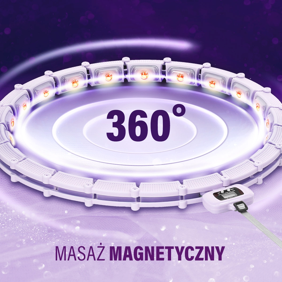 Hula hoop HMS to inteligentna obręcz fitness zaprojektowana dla komfortowego i efektywnego treningu w domu. Konstrukcja z 21 łączonych segmentów umożliwia ustawienie długości pod obwód talii 76–113 cm, aby obręcz trzymała się stabilnie i nie ześlizgiwała się przez biodra. Po wewnętrznej stronie znajdują się magnetyczne wypustki masujące, które wspierają ukrwienie i komfort podczas ćwiczeń.
