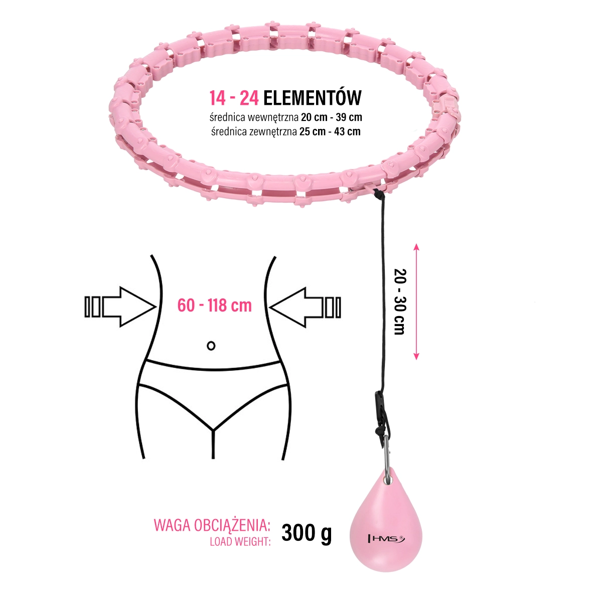 HMS HHW02 to nowoczesna obręcz hula hoop z regulowaną długością i obracającym się obciążnikiem o masie 300 g, który zwiększa intensywność treningu. Składana konstrukcja z 24 segmentów umożliwia łatwe dopasowanie obwodu talii (60–118 cm). Wewnętrzne powierzchnie masujące przyjemnie stymulują okolice brzucha i talii, a płynny ruch zmniejsza obciążenie pleców i bioder.