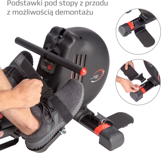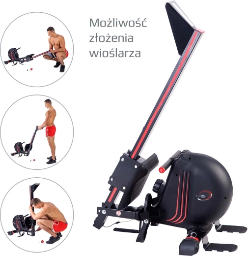 Zintegrowany komputer wyświetla kluczowe parametry, a z opcjonalnym pasem piersiowym (np. Polar H1) monitoruje także tętno. Urządzenie można łatwo złożyć, aby zaoszczędzić miejsce. Wiosłowanie skutecznie wzmacnia mięśnie nóg, pośladków, pleców, barków, ramion i brzucha oraz poprawia pojemność płuc i kondycję układu krążenia.