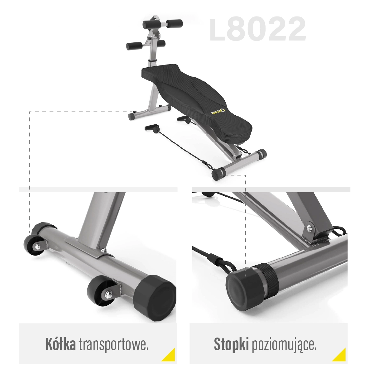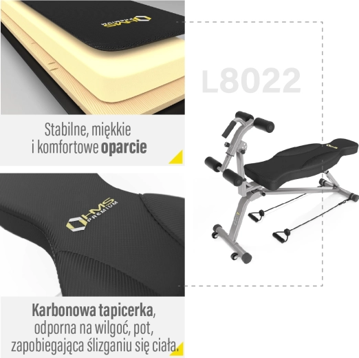 - Regulowana rama z blokadami dla bezpiecznych brzuszków i indywidualnego dopasowania