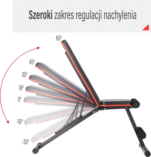 - 7 pozycji oparcia (-30° do 60°) dla uniwersalnego treningu