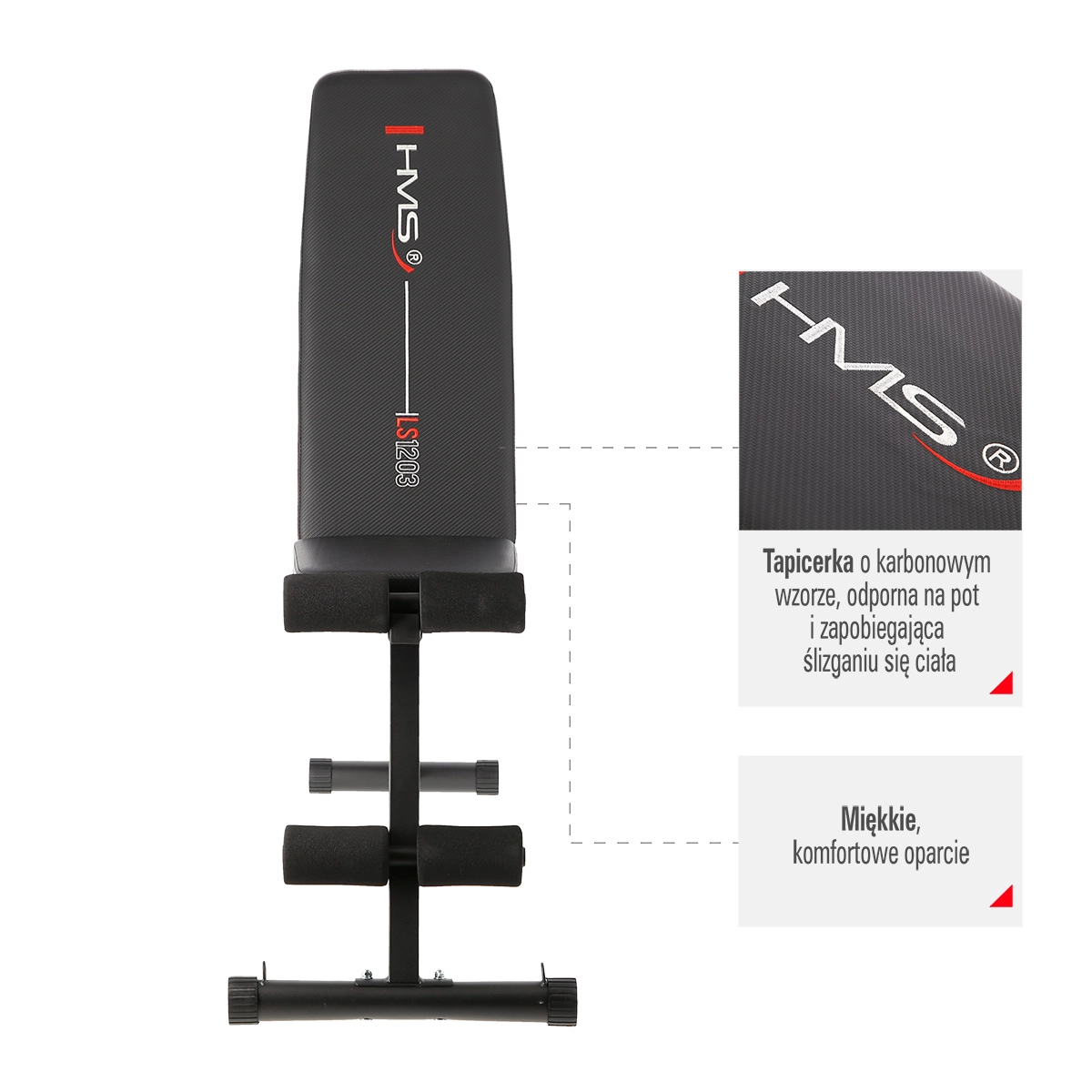 Ławka HMS LS1203 to idealny wybór do efektywnego wzmocnienia całego ciała w domowym zaciszu. Regulowane oparcie w 7 krokach (-30° do 60°) pozwala trenować na ławce płaskiej, skośnej i ujemnej, dzięki czemu łatwo zaangażujesz mięśnie klatki piersiowej, barki, plecy oraz core. Dzięki gumowym ekspanderom rozszerzysz trening o ćwiczenia ciągnione, aktywując mniejsze grupy mięśniowe.