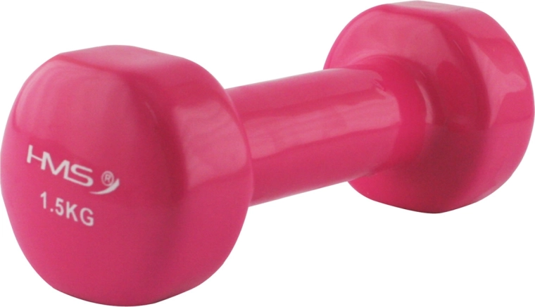 Praktyczny żeliwny hantel jednoręczny HMS o masie 1,5 kg z wytrzymałą powłoką winylową dla wygodnych i higienicznych ćwiczeń. Dzięki ergonomicznemu kształtowi dobrze leży w dłoni i nie wyślizguje się. Idealny do treningu fitness, ćwiczeń aerobowych, wzmacniania ramion, klatki piersiowej i pleców oraz rehabilitacji.