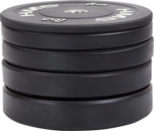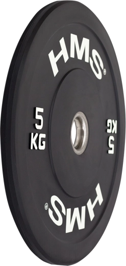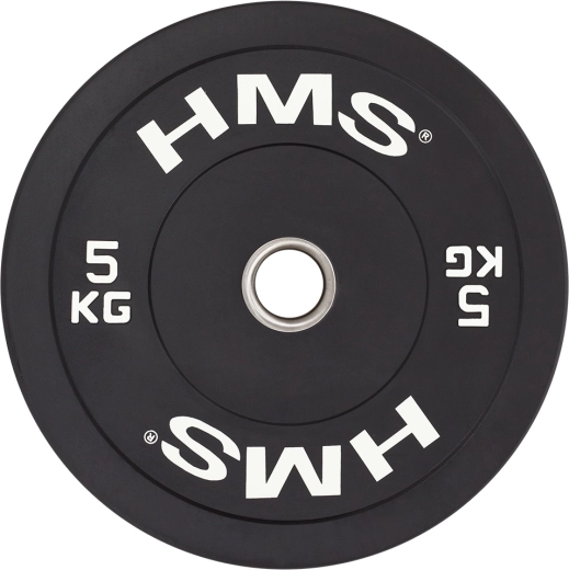 Wytrzymała olimpijska bumper tarcza HMS 5 kg do treningu ciężarowego i funkcjonalnego. Dzięki solidnej gumie i stalowej wkładce nadaje się do intensywnych ćwiczeń i bezpiecznego zrzucania z wysokości. Pasuje do olimpijskich gryfów 50 mm, chroni podłogę i redukuje hałas.