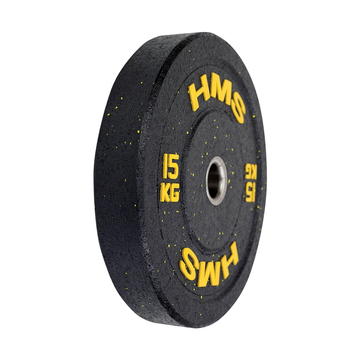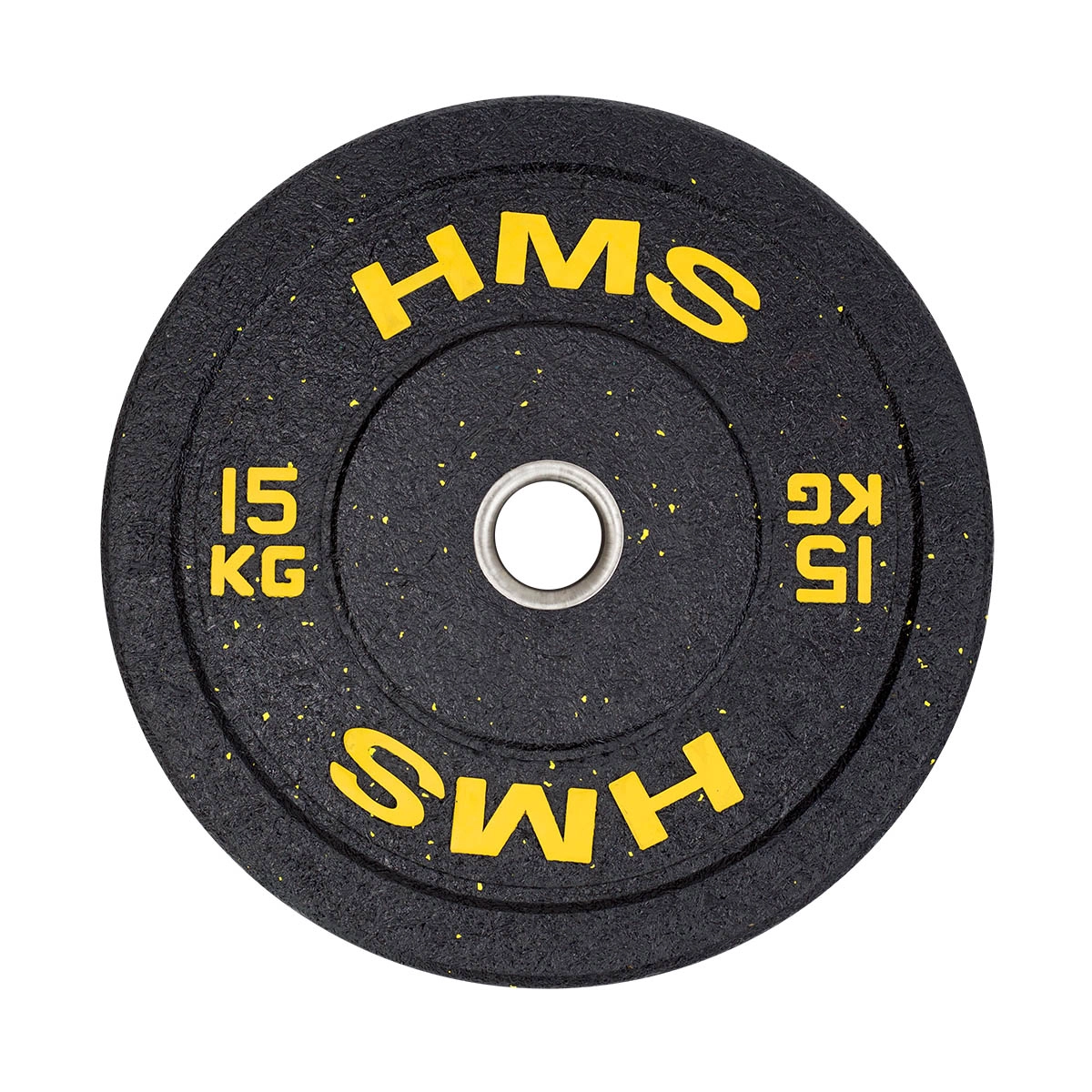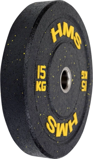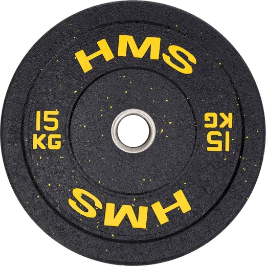 Wytrzymała olimpijska tarcza bumper HMS o wadze 15 kg do treningu ciężarowego i funkcjonalnego. Dzięki solidnej gumowej konstrukcji i stalowej wkładce idealnie sprawdza się przy intensywnych ćwiczeniach, redukuje hałas i chroni podłogę podczas zrzutów. Odpowiednia do gryfów o średnicy 50 mm. Profesjonalna jakość, maksymalna odporność i pewne mocowanie.