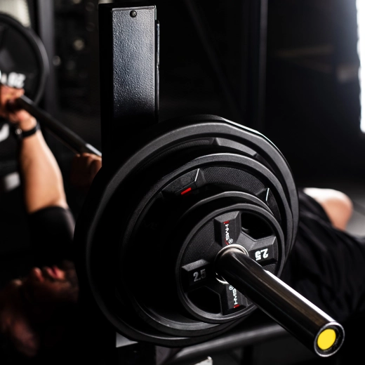 Tarcza pasuje do standardowych olimpijskich gryfów i maszyn, dzięki czemu łatwo zwiększysz obciążenie przy przysiadach, wyciskaniu i bench pressie.