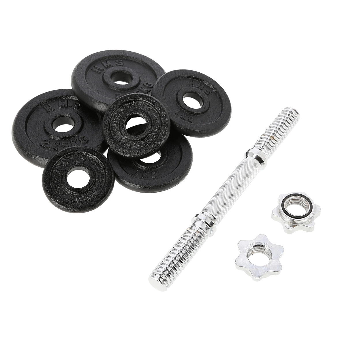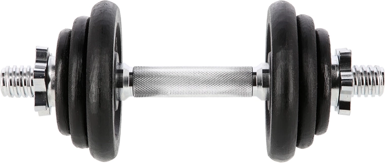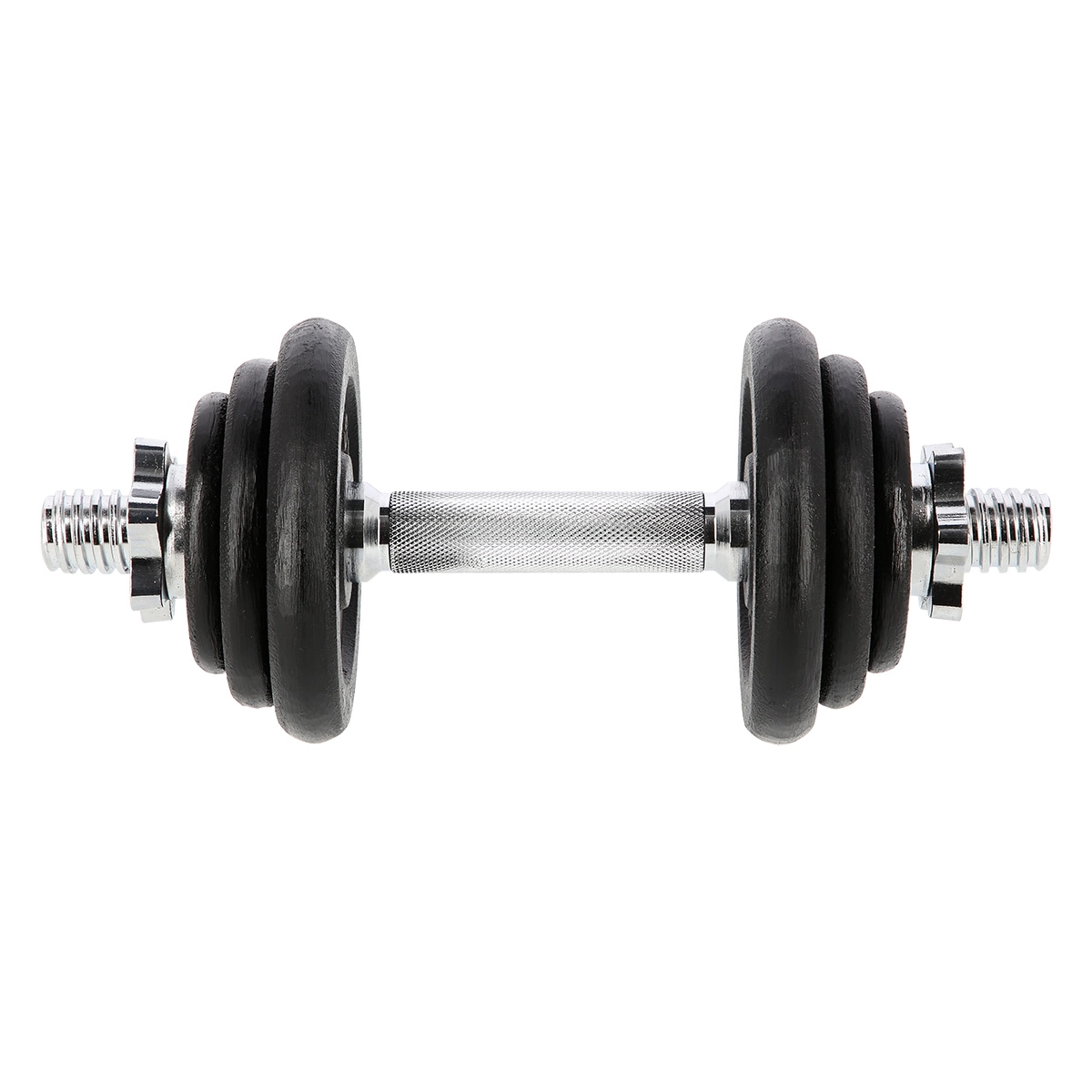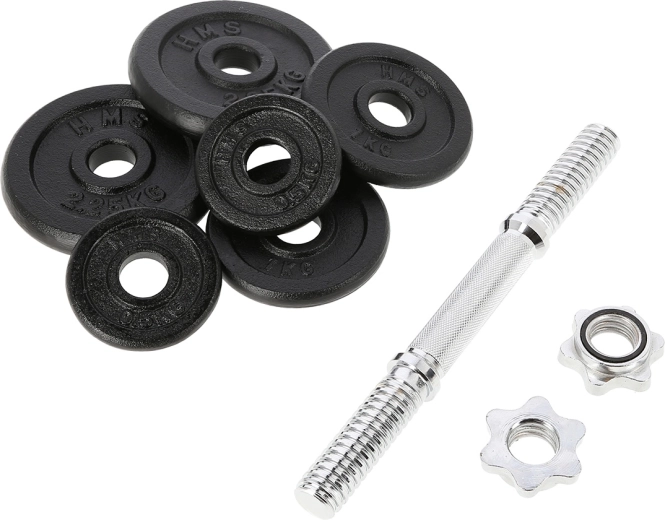 Hantla jest idealna do uginania bicepsów, wyciskań, tricepsu i barków. Gwintowany gryf o długości 35 cm i średnicy 30 mm pozwala łatwo zmieniać kombinacje obciążeń i dostosować opór do Twoich celów. Nakrętki gwiazdkowe (spin-lock) z gumowym paskiem utrzymują talerze pewnie na miejscu i uniemożliwiają ich odkręcanie podczas treningu.