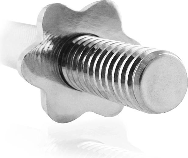 Gryf ma gwint do szybkiego i bezpiecznego zakładania talerzy. Para nakrętek gwiazdkowych z wewnętrznym gumowym uszczelnieniem minimalizuje luzowanie obciążenia i chroni sprzęt. Nośność 100 kg i masa 6 kg stanowią idealne proporcje do efektywnego treningu siłowego.