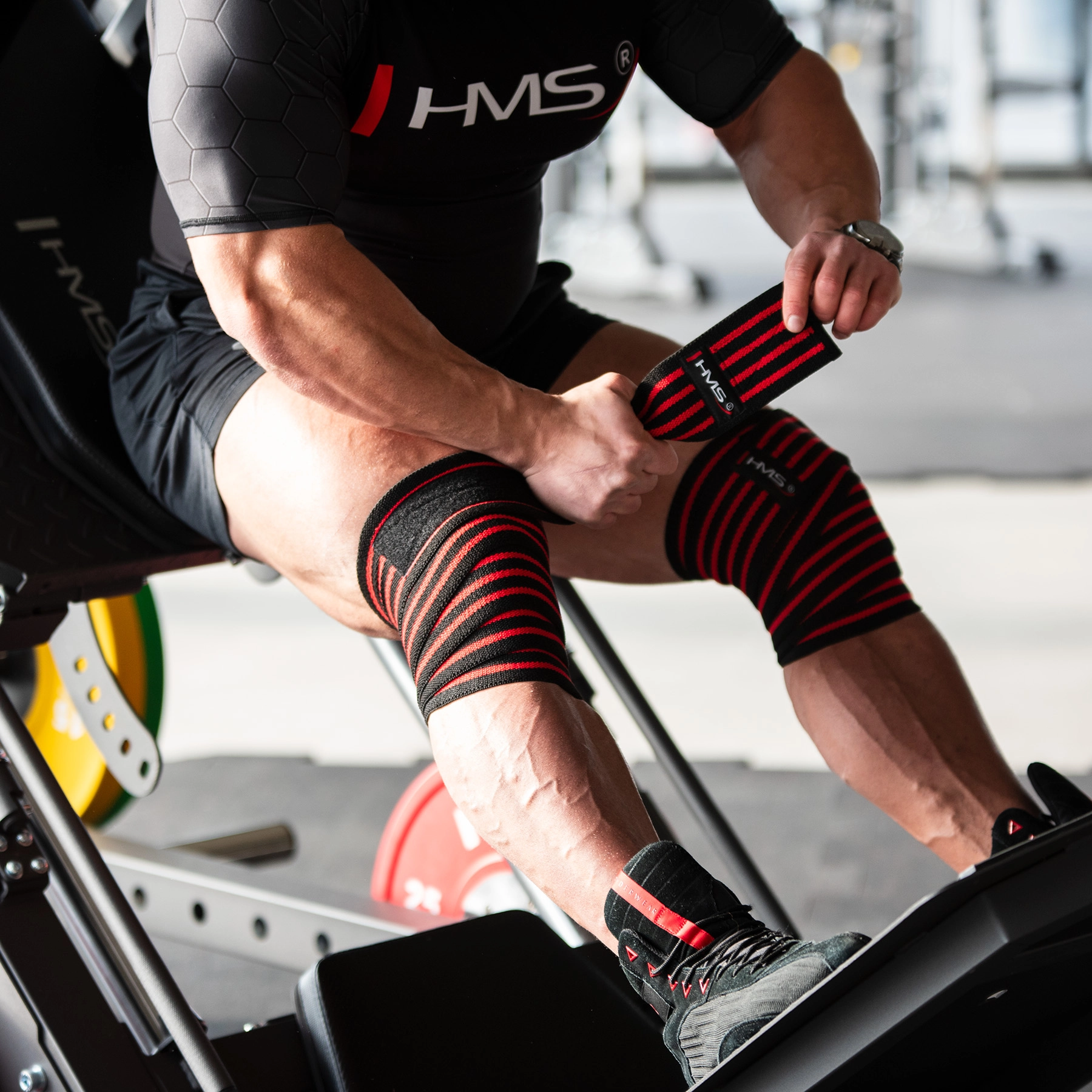 Owijki utrzymują kolana we właściwej pozycji, poprawiają stabilność i wspierają technikę przysiadów oraz leg pressu przy wysokim obciążeniu.
