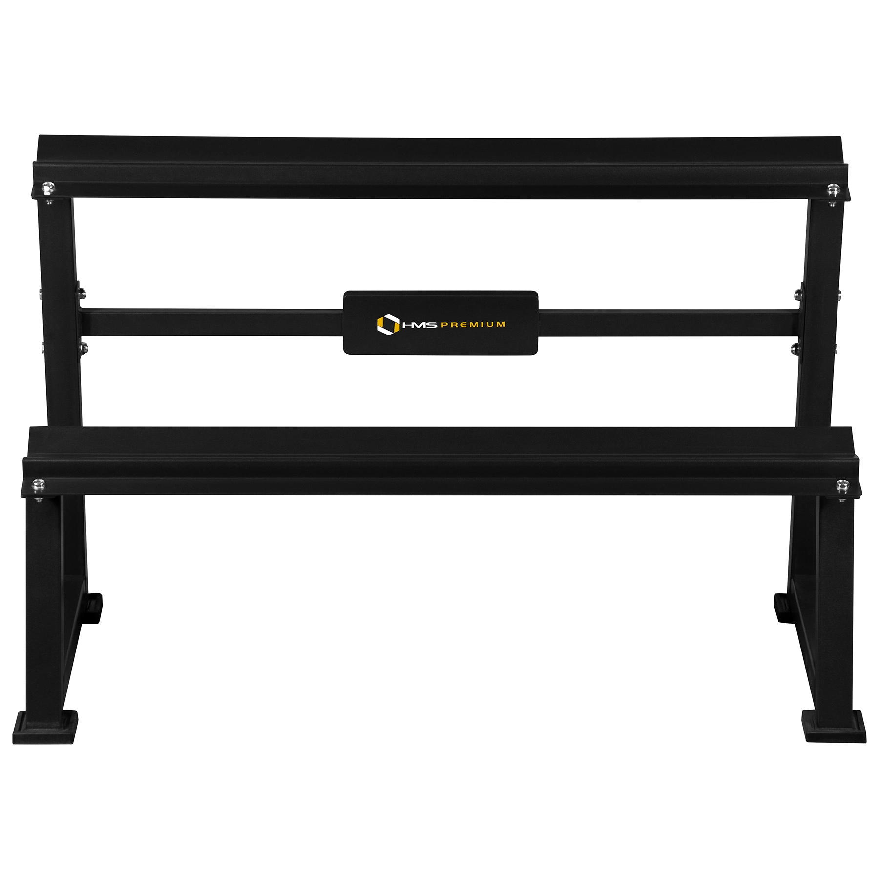 HMS Premium STR20 to stabilny, dwupoziomowy stojak na hantle, który utrzyma porządek w Twojej siłowni i jednocześnie oszczędzi miejsce. Masywna rama z profilu stalowego 50 × 50 mm oraz precyzyjne spawy gwarantują długą żywotność i maksymalną stabilność nawet przy pełnym obciążeniu.