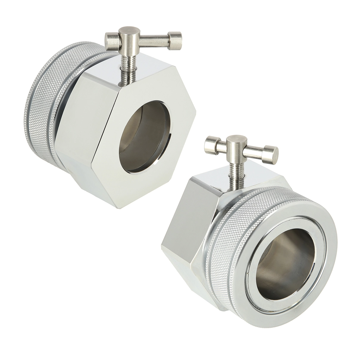 Konstrukcja z wytrzymałej polerowanej stali zapewnia długą żywotność i odporność nawet przy wysokich obciążeniach. Każdy zacisk waży 2,5 kg, dzięki czemu może jednocześnie służyć jako obciążenie do precyzyjnego dostrajania masy gryfu.
