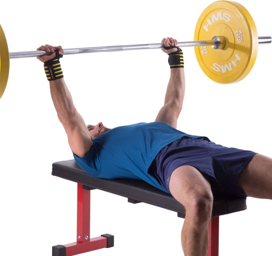 Elastyczna kompresja i pewne usztywnienie nadgarstków podczas wyciskania, pressów i ćwiczeń ciężarowych.