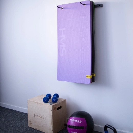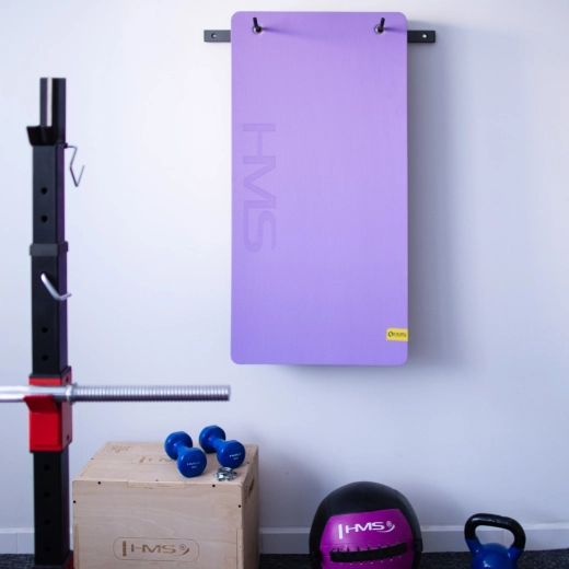 Ścienny uchwyt na maty HMS STR30 utrzymuje maty z dala od podłogi, oszczędza miejsce i zapewnia porządek w sali gimnastycznej, studiu czy biurze. Trwała stalowa konstrukcja oraz przemyślane rozstawy haków (39–62 cm) ułatwiają wygodne zawieszanie różnych typów mat z oczkami.