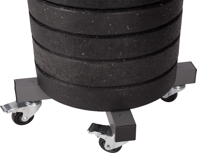 Cztery obrotowe kółka z nożnymi hamulcami umożliwiają szybkie przestawienie stojaka i jego bezpieczne zablokowanie dokładnie tam, gdzie potrzebujesz ćwiczyć.