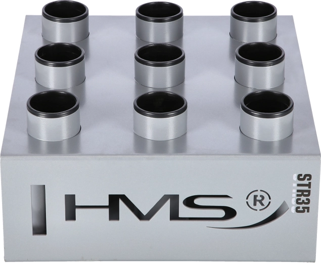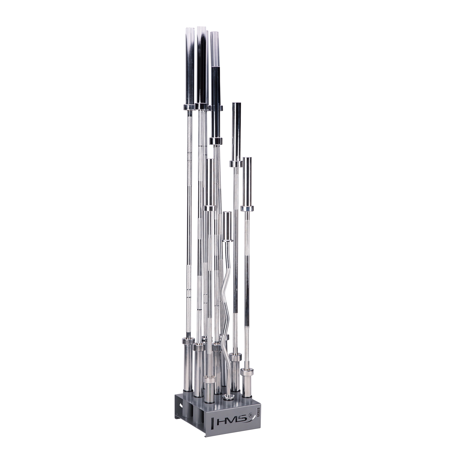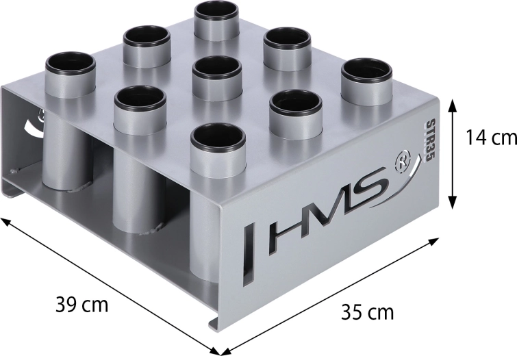 HMS STR35 to wysokiej jakości stalowy stojak przeznaczony do pionowego przechowywania 9 olimpijskich gryfów. Dzięki kompaktowym wymiarom zmieści się w każdym kąciku fitness, a jednocześnie bezpiecznie utrzyma sprzęt na miejscu i poprawi organizację oraz bezpieczeństwo przestrzeni treningowej.