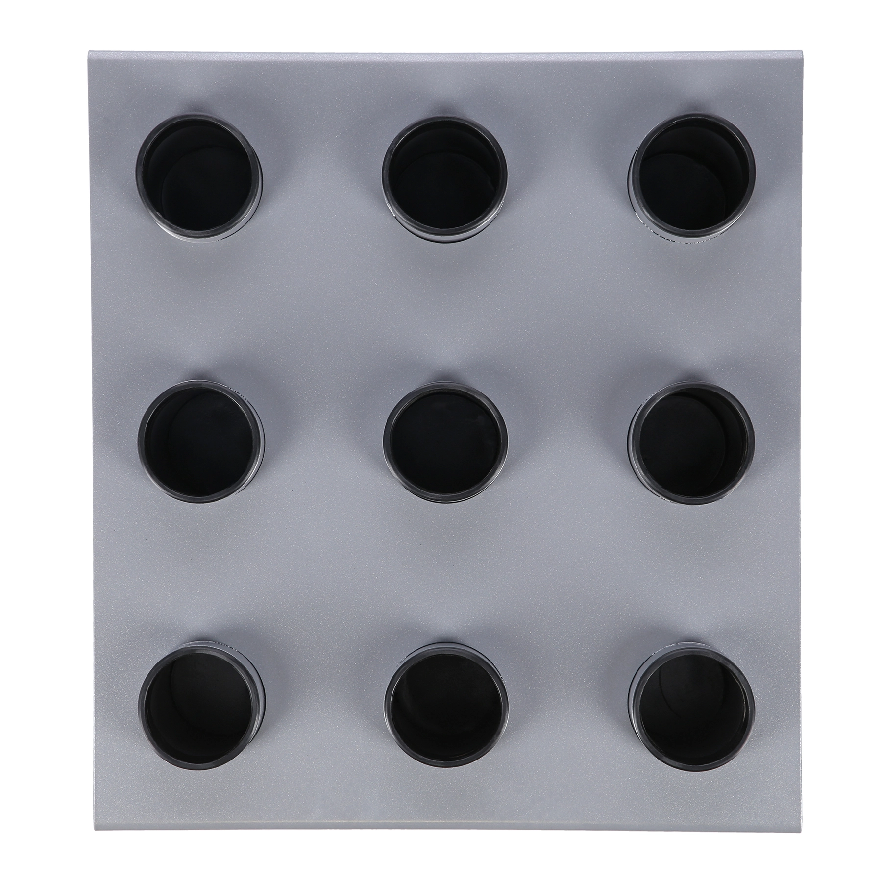 - Maksymalny porządek i efektywność: 9 oddzielnych tulei (Ø 52 mm, wysokość 150 mm) do standardowych olimpijskich gryfów.