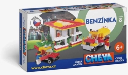Odkryj klasyczne czeskie klocki CHEVA 8 stacja benzynowa z 349 elementami, które wprowadzają dzieci w świat stacji paliw, cysterny i pojazdu holowniczego. Zmienny system elementów wspiera kreatywność, wyobraźnię i zręczność, a także doskonale uzupełni twoje miasteczko CHEVA.